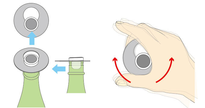栓抜きの穴の大きいほうに栓の部分を通してください。栓抜きを手で覆うようにして持つと、開封時に栓が飛ぶのを防ぐことができて安心です。